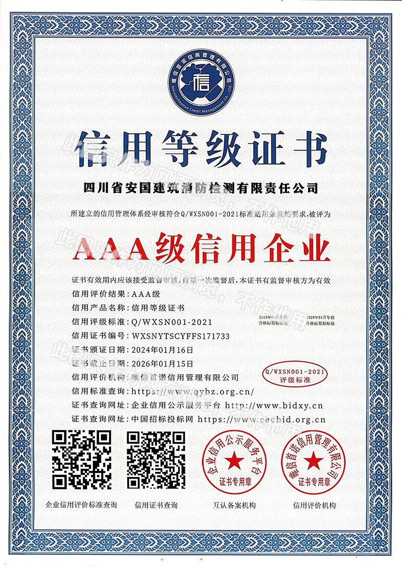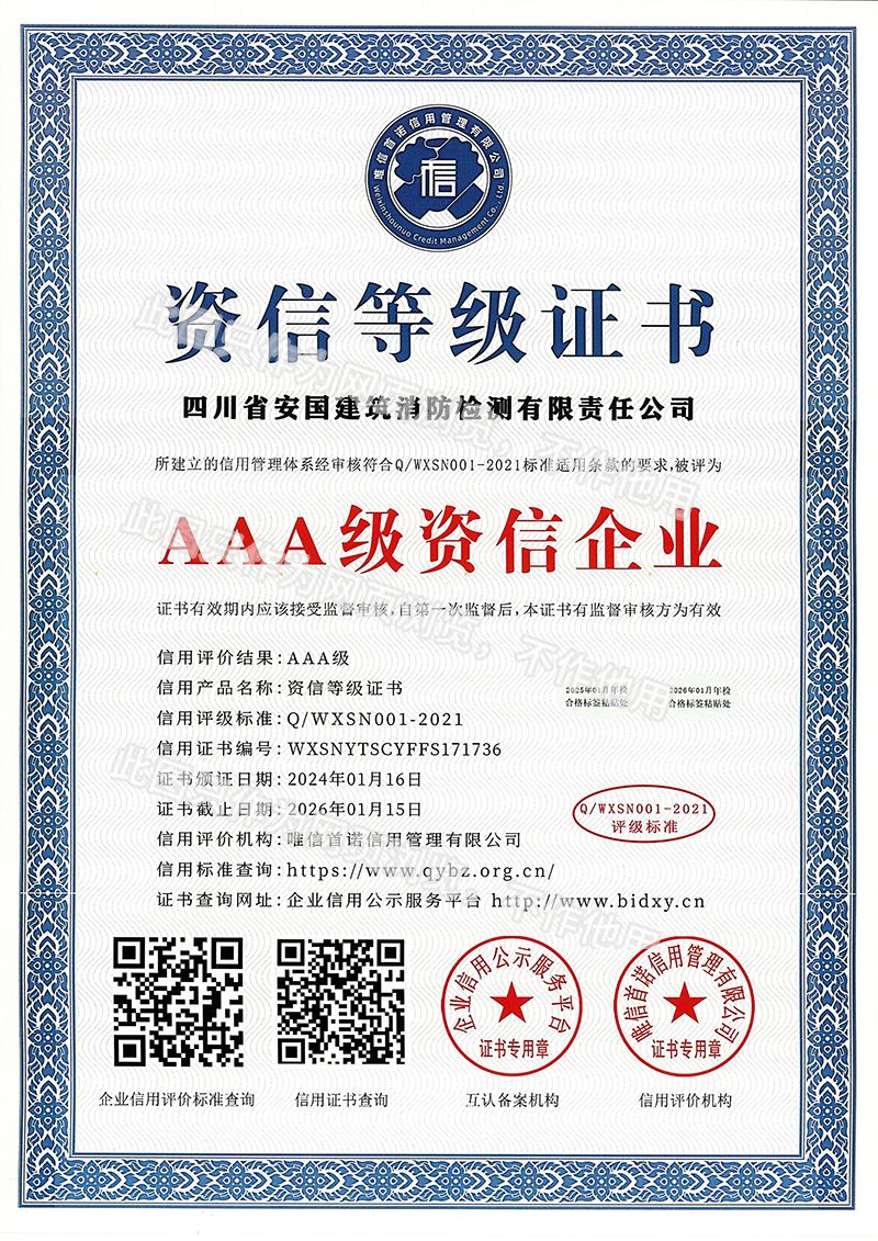 四川省安國建筑消防檢測(cè)有限責(zé)任公司,成立于1998年,經(jīng)四川省公安消防總隊(duì)批準(zhǔn),工商部門注冊(cè)的獨(dú)立法人單位。
